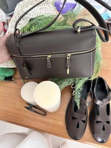 Beyond my expectations!! Looks luxurious and have enough space for everything! It’s exactly Loro Piana style! I am wearing it more than my designer brands now!!